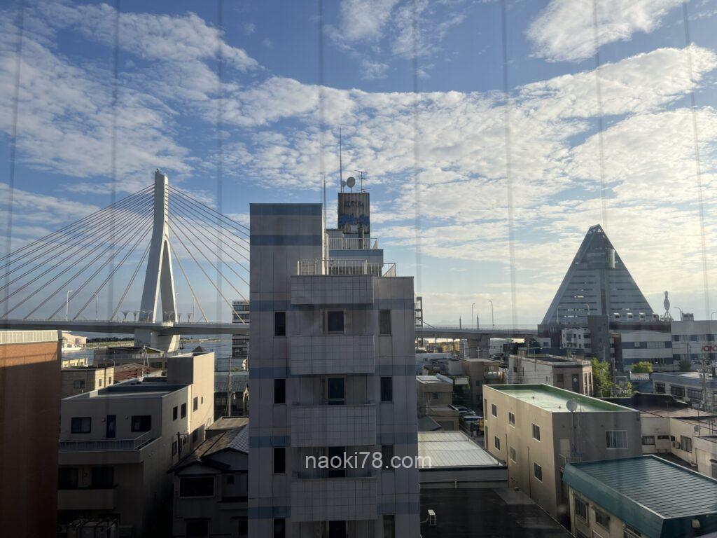 そちらへいく前に、朝食会場より見えていた青森湾にかかるベイブリッジを走っていきます。