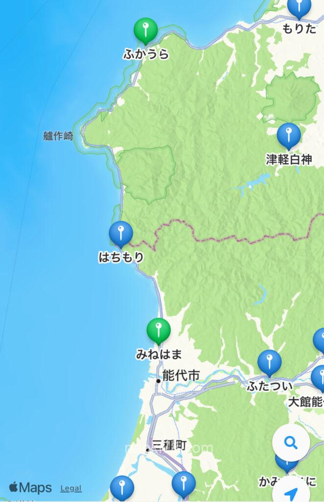 雨雲レーダーで調べると内陸部は昼ぐらいから雨予報だったので、選択の余地はなく、昨日来た日本海側をまた走り帰ることに。