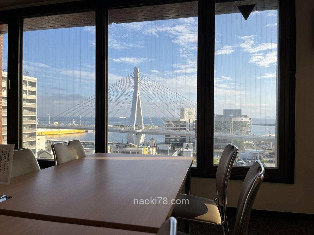 青森湾を望む良い景色を眺めながらの朝食。