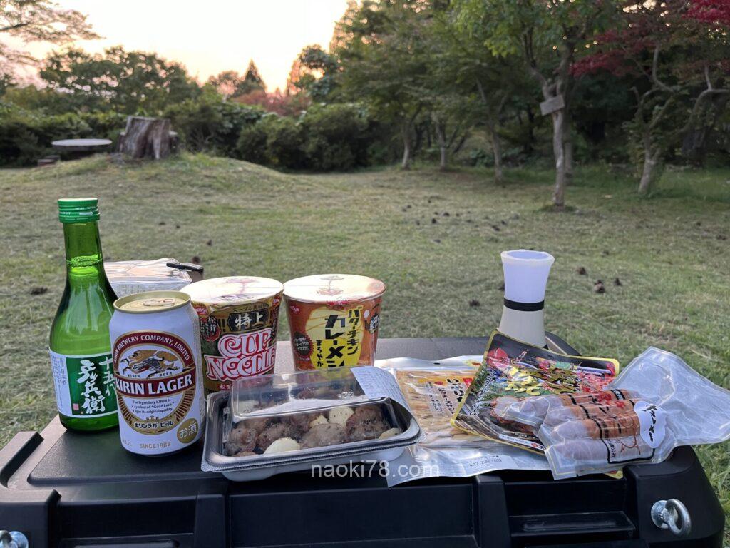 テントを張りキャンプらしさはありますが、食事は出来合いのものばかり。