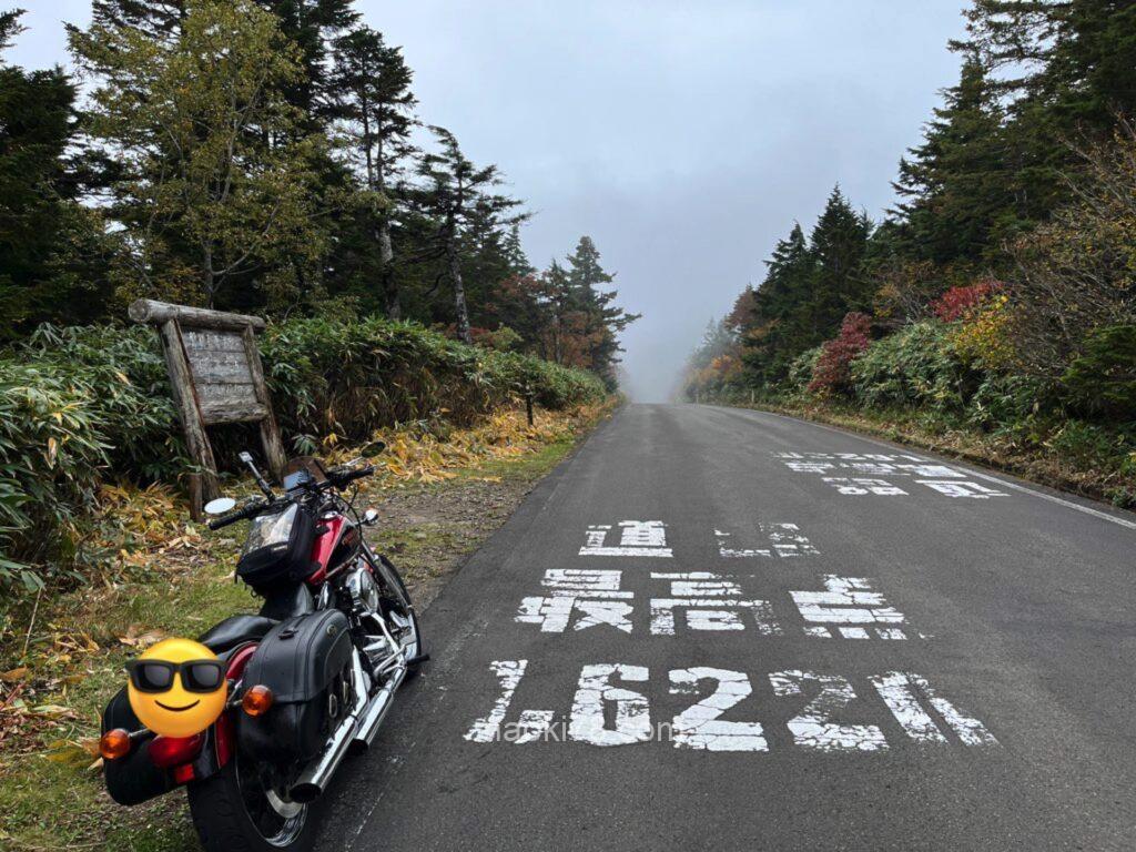 途中、かろうじて雲の隙間があったのかちょうど磐梯吾妻スカイライン最高地点で濃霧が晴れてたので写真を📷。