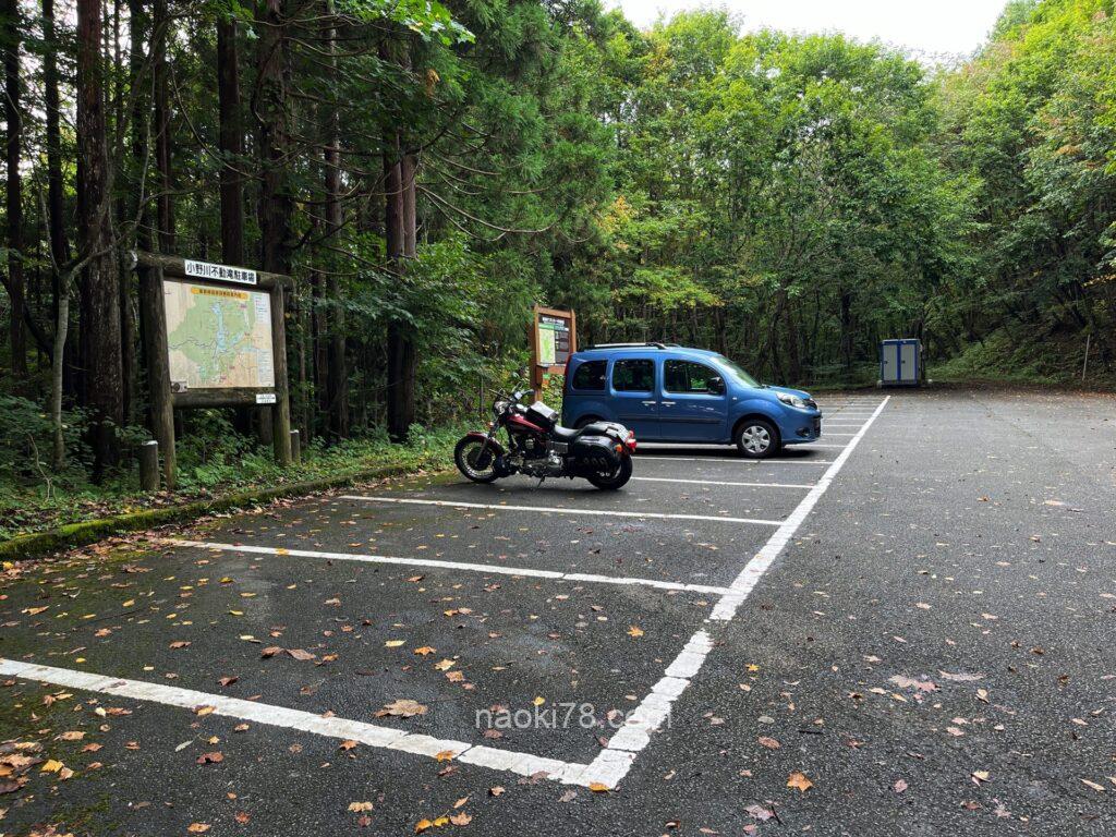 たしかにそこからも滝へ行けるようでしたが、登山道の入り口みたいなところだったため、引き返して来る途中に看板があった場所を進み、整備された駐車場のある入り口から滝へ歩いていきます。