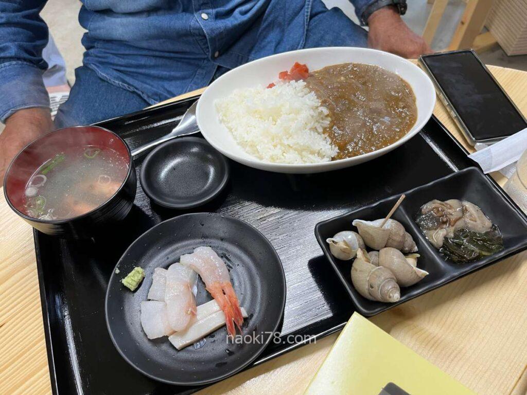 カレーにも小鉢や刺身まで付いてきたのは嬉しい。