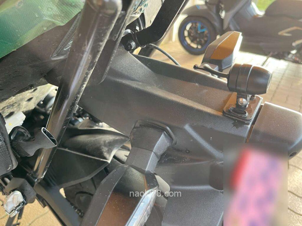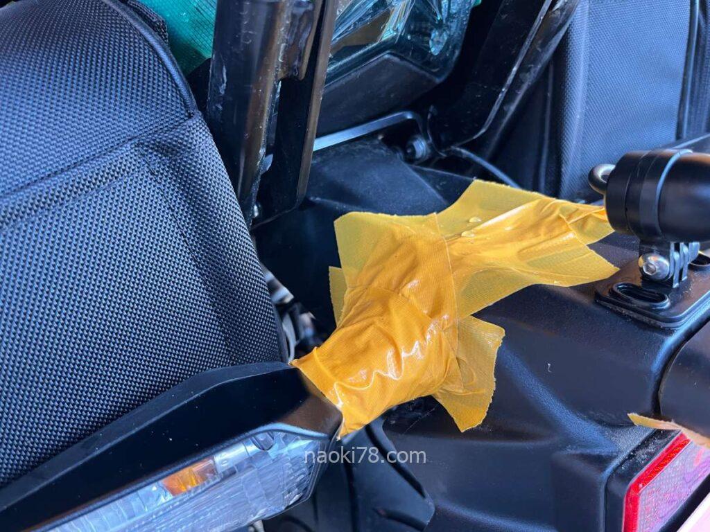 折れたウインカーはガムテープでぐるぐる巻きに。
