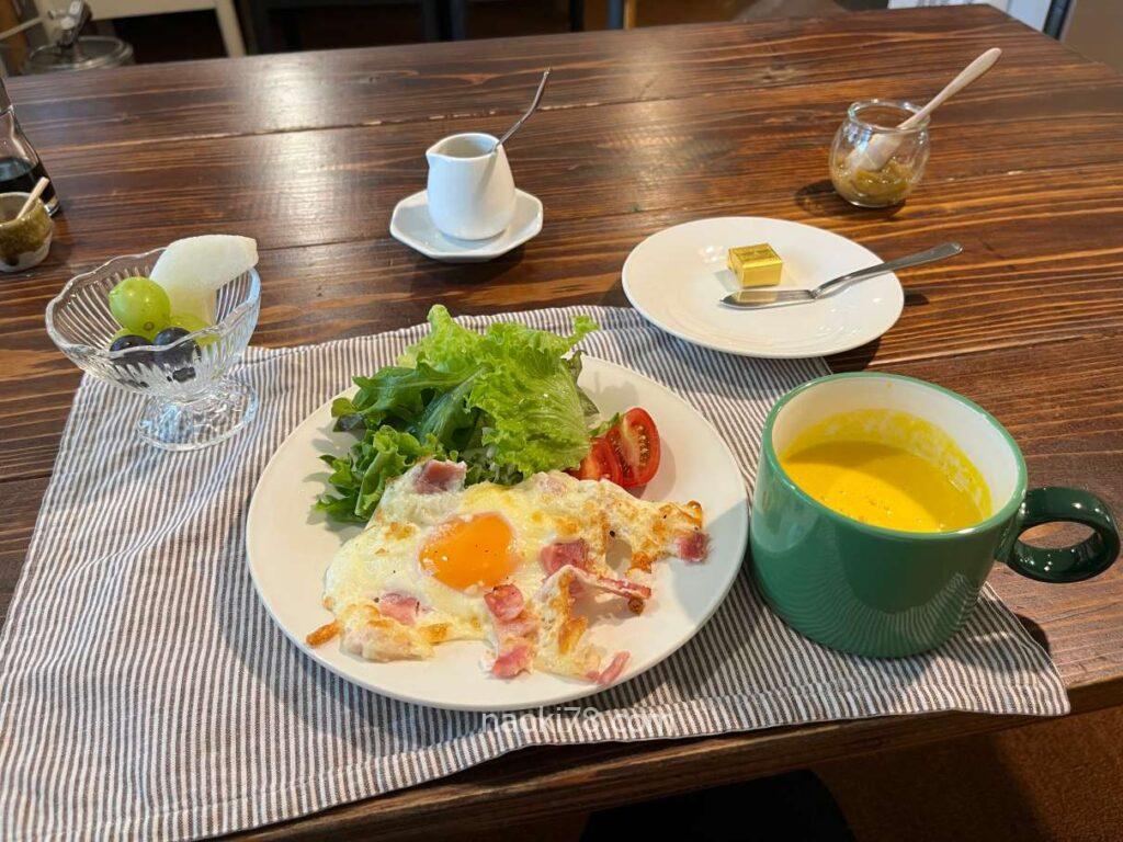 裏磐梯にあるペンションマーベリックさんにて朝食をいただく。