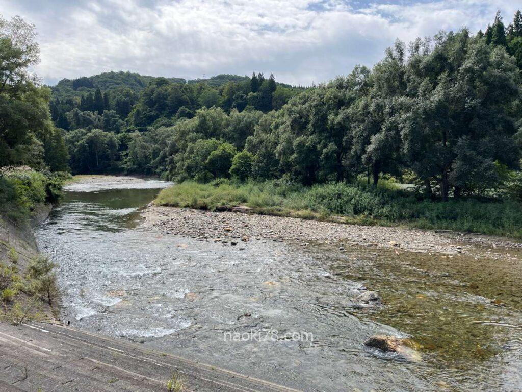 観光で写真取れるような場所ではなかったので、さらに奥に進んで探してみると、「片貝公民館」という場所から曲がると橋らしい場所があったので寄ってみました。